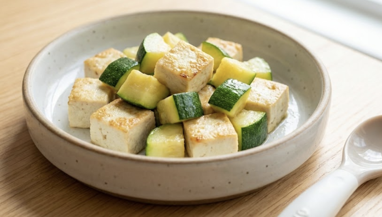 아기가 씹는 연습을 시작하는 후기 이유식부터는 두부와 애호박을 큐브 형태로 썰거나 다져서 볶음이나 전으로 만들어줄 수 있습니다. 이때는 아기에게 적합한 소량의 기름을 사용하여 조리합니다.