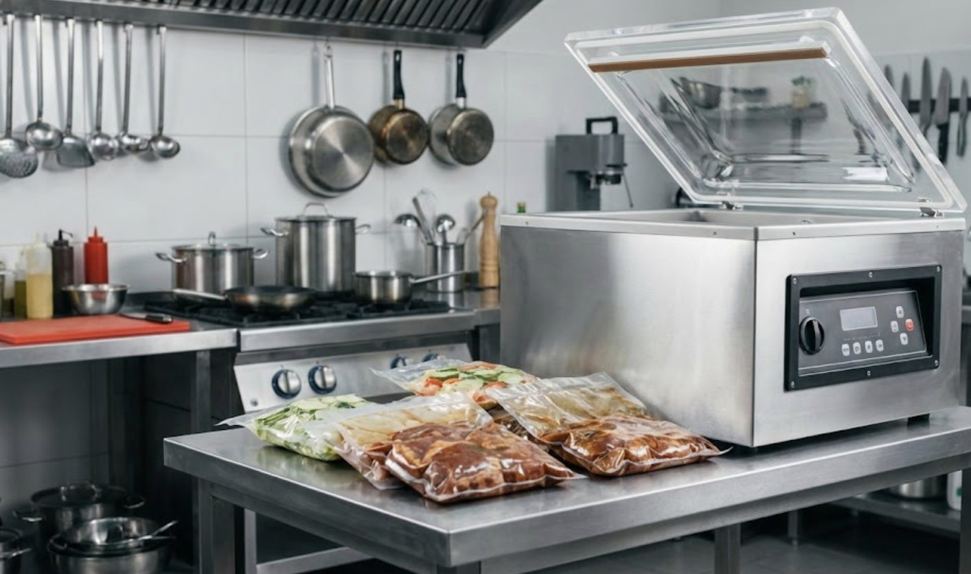 식당, 카페, 정육점 등 영업장에서 대량의 식재료를 자주 진공포장할 때 사용합니다. 가정용보다 훨씬 강력한 흡입력과 내구성을 자랑하며, 연속 사용에 적합합니다.