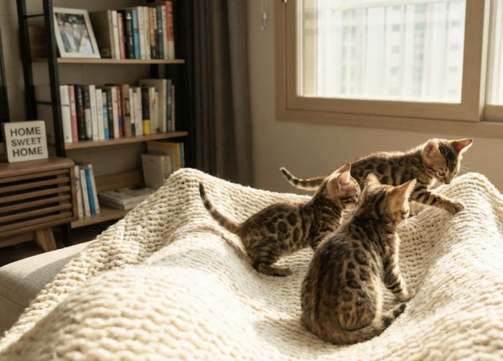 새끼 고양이는 어미와 떨어져 새로운 환경에 적응해야 하므로 세심한 보살핌이 필요합니다. 특히 뱅갈 고양이는 활동량이 많으므로 이에 맞는 준비가 중요합니다.