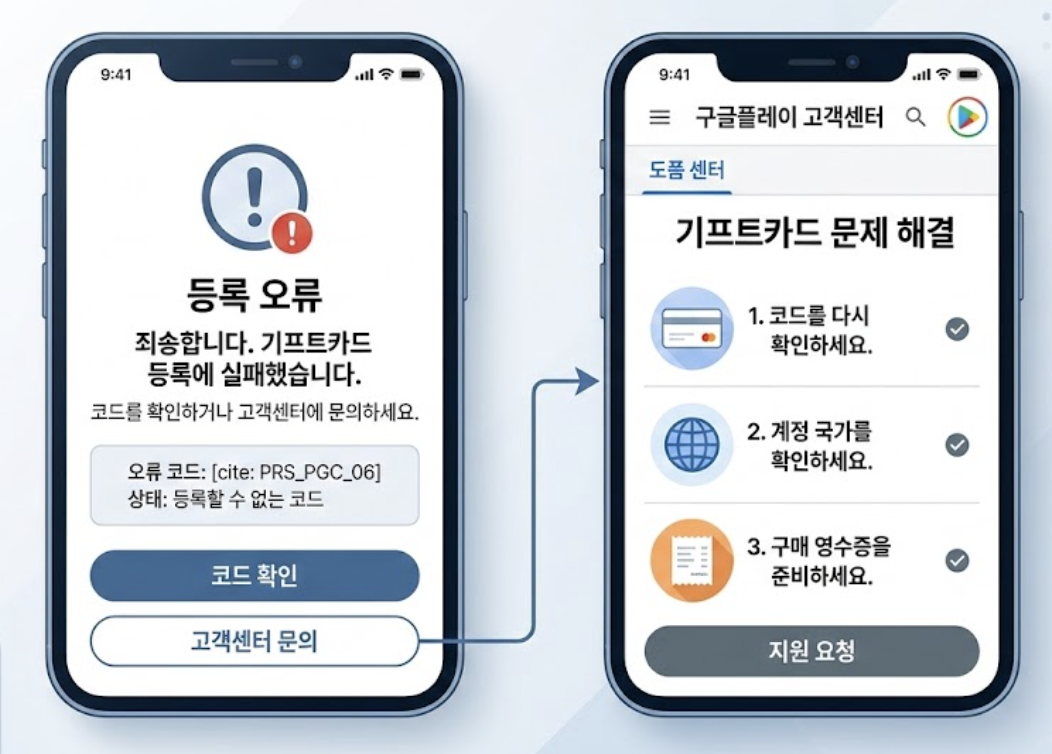 먼저 코드 오입력, 이미 사용된 코드, 지역 제한, 유효 기간 만료 등을 확인해 보세요. 그래도 해결되지 않는다면, 구매 시 받은 영수증을 지참하여 구매처에 문의하거나 Google 고객센터에 연락하여 도움을 받을 수 있습니다.