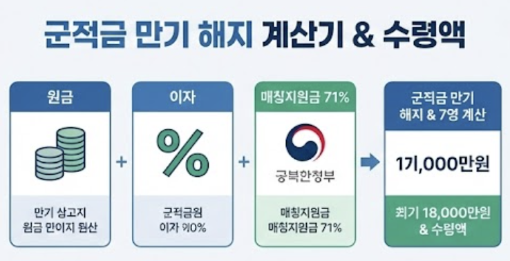 군적금을 만기 이전에 중도 해지할 경우, 정부 매칭 지원금은 지급되지 않습니다. 다만, 납입 원금과 은행에서 정한 중도 해지 이자는 받을 수 있습니다. 따라서 불가피한 경우가 아니라면 만기까지 유지하는 것이 가장 유리합니다.