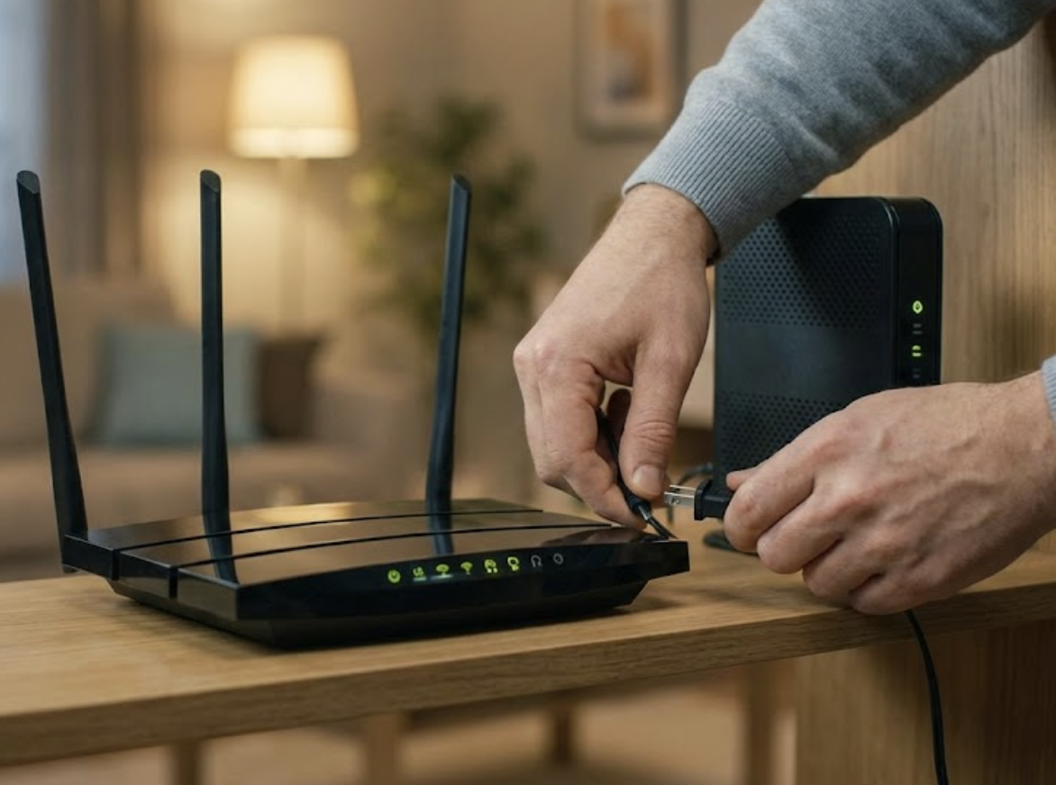 와이파이 라우터와 인터넷 모뎀은 장시간 작동하면서 오류가 발생할 수 있습니다. 두 기기의 전원 케이블을 뽑고 약 1분 정도 기다린 후 다시 연결하여 재부팅해 보세요. 모뎀을 먼저 켜고 완전히 부팅된 후(보통 모든 LED가 안정적으로 켜진 후) 라우터를 켜는 것이 좋습니다.