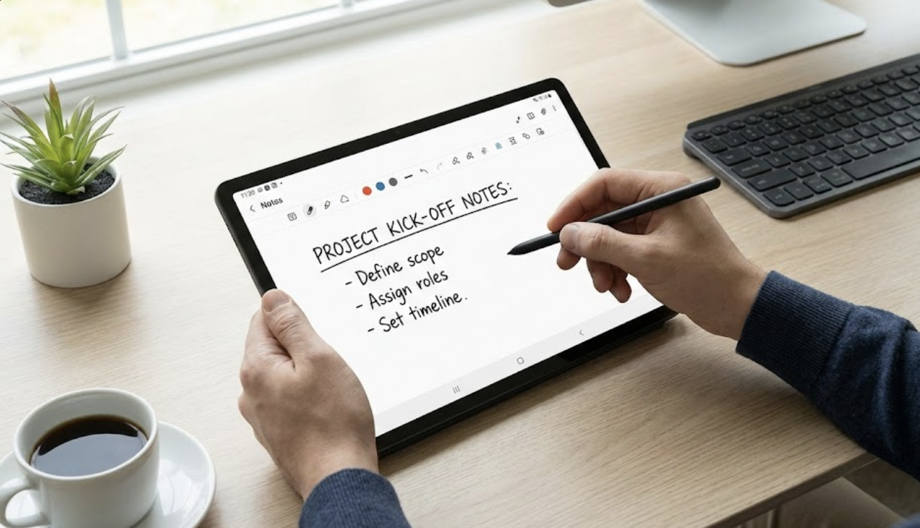 - 갤럭시 스마트폰에 기본 설치된 ‘삼성 노트’나 ‘캔바(Canva)’와 같은 다른 앱을 활용합니다.