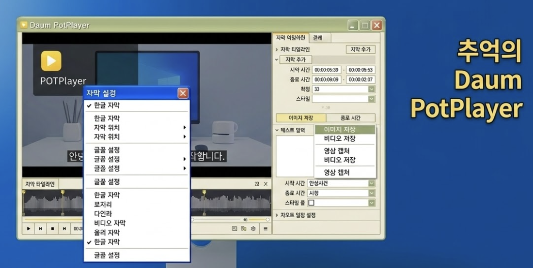 다음 카카오 팟플레이어 자막 생성 구버전 캡쳐를 찾아보는 이유! 다채로운 미디어 콘텐츠가 넘쳐나는 시대에, 고품질의 영상과 음향을 손쉽게 즐길 수 있게 해주는 미디어 플레이어는 우리의 디지털 라이프에서 빼놓을 수 없는 필수 도구가 되었기 때문입니다. 그중에서도 ‘팟플레이어’는 국내 사용자들에게 압도적인 지지를 받으며 오랜 시간 사랑받아온 대표적인 프로그램입니다. 카카오 팟플레이어, 다음 팟플레이어라는 이름으로 익숙한 이 플레이어는 단순한 영상 재생을 넘어, 캡쳐, 자막 관리, 다양한 설정 등 폭넓은 기능을 제공하여 사용자 경험을 극대화합니다.