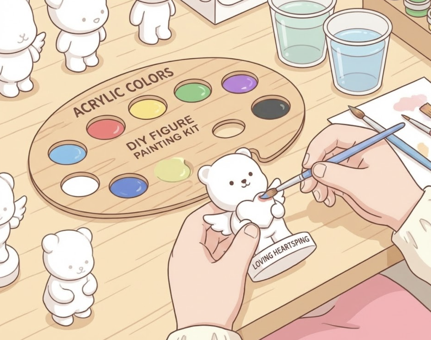 - 준비물: 미도색 하츄핑 피규어, 아크릴 물감, 붓 (세필 붓 포함), 물통, 팔레트, 휴지, 작업대 보호용 신문지나 비닐, 마감제(유광/무광 바니시).