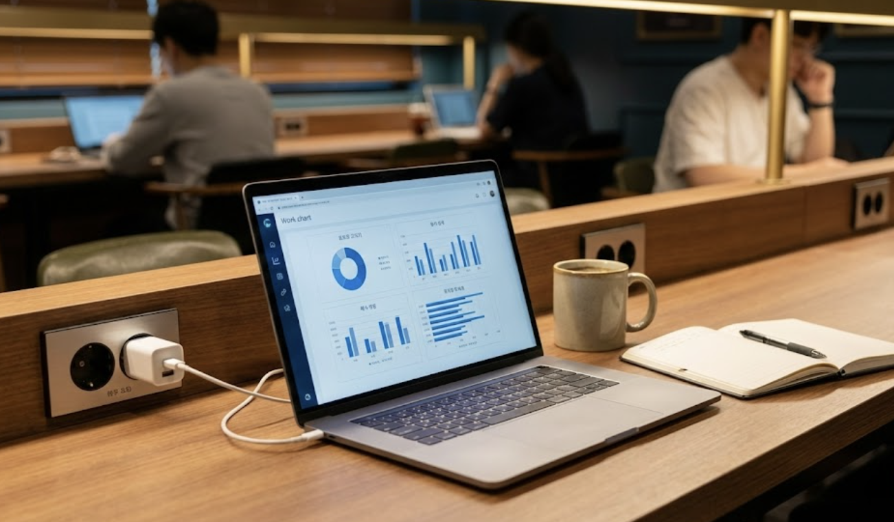 노트북이나 태블릿 사용이 필수적인 경우, 콘센트 개수와 위치는 매우 중요합니다. 자리마다 충분한 콘센트가 있는지, 와이파이 속도는 빠른지 확인해야 합니다.