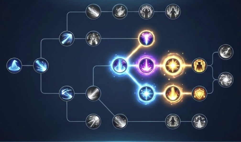 - 중반: 학도 마법사 전용 연구 시스템이나 스킬 트리에 투자하여 핵심 스킬의 잠재력을 해금합니다. 다양한 속성 마법을 익혀 유연한 대응력을 갖추는 것을 목표로 합니다.