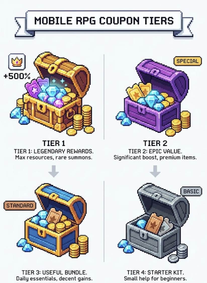모든 쿠폰이 동일한 가치를 가지는 것은 아닙니다. 어떤 쿠폰은 게임의 흐름을 바꿀 만큼 강력한 보상을 주기도 하고, 어떤 쿠폰은 소소한 도움을 주기도 합니다. 이러한 가치와 중요도에 따라 쿠폰을 분류하는 것이 바로 ‘쿠폰 티어’입니다. 쿠폰 티어를 이해하면 제한된 시간 안에 어떤 쿠폰을 우선적으로 확보해야 할지 명확한 기준을 세울 수 있습니다.