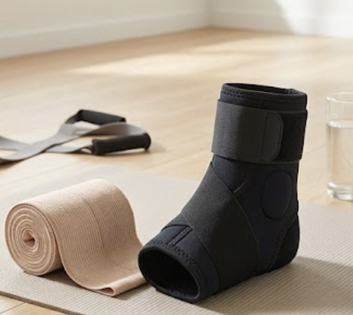 발목 염좌 회복 과정에서 다양한 보조용품들이 통증 완화와 안정적인 회복을 돕습니다.