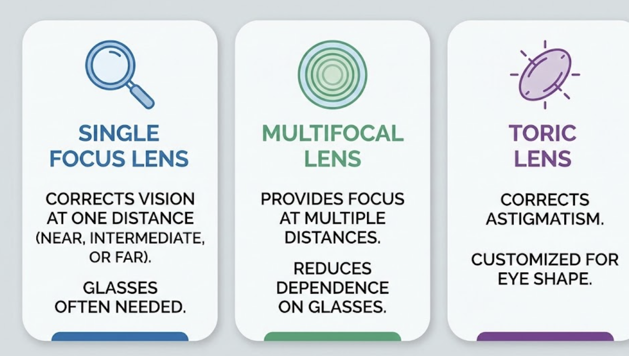 백내장 수술 시 삽입되는 인공 수정체는 시력의 질을 결정하는 중요한 요소입니다. 렌즈의 종류에 따라 보이는 거리나 생활의 편리함이 달라지므로, 자신의 생활 습관과 시력 요구 사항을 고려하여 신중하게 선택해야 합니다.