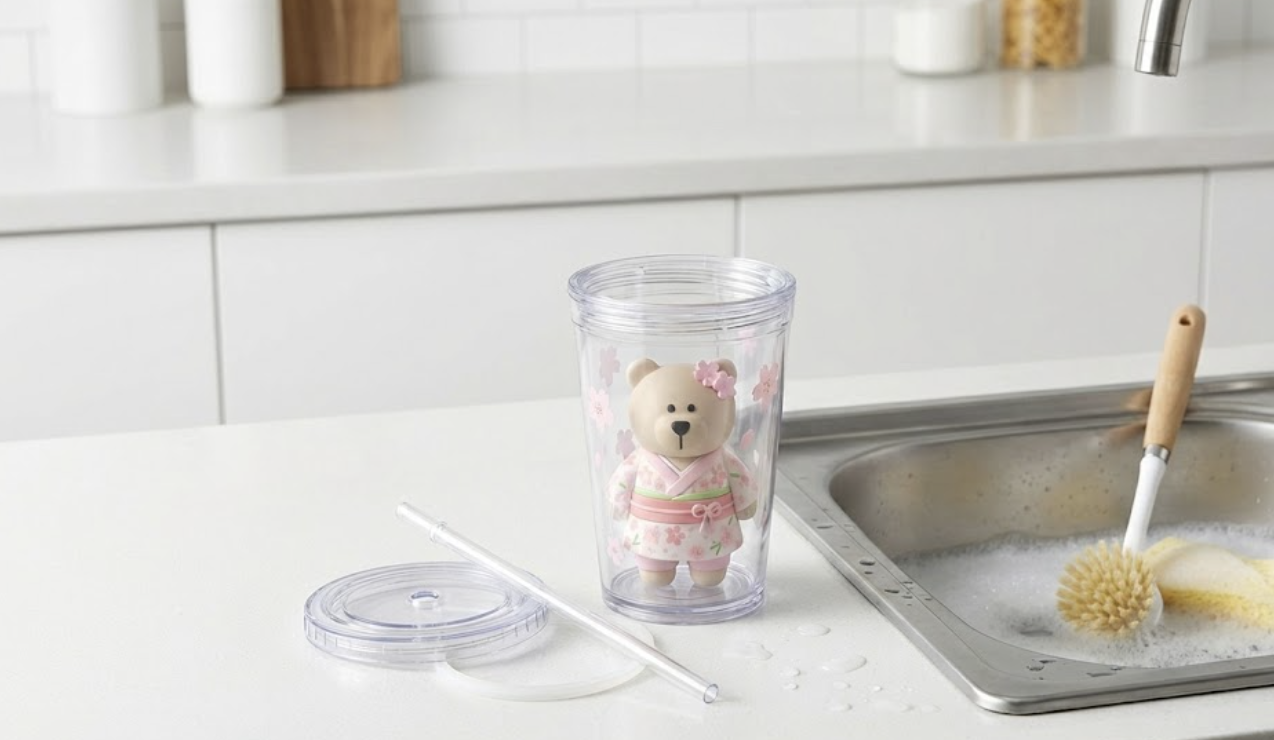 - 분리 세척 컵 본체, 뚜껑, 빨대를 모두 분리하여 세척합니다. 특히 뚜껑의 고무 패킹이나 빨대 부분은 음료 찌꺼기가 끼기 쉬우므로 꼼꼼히 분리하여 닦아야 합니다.