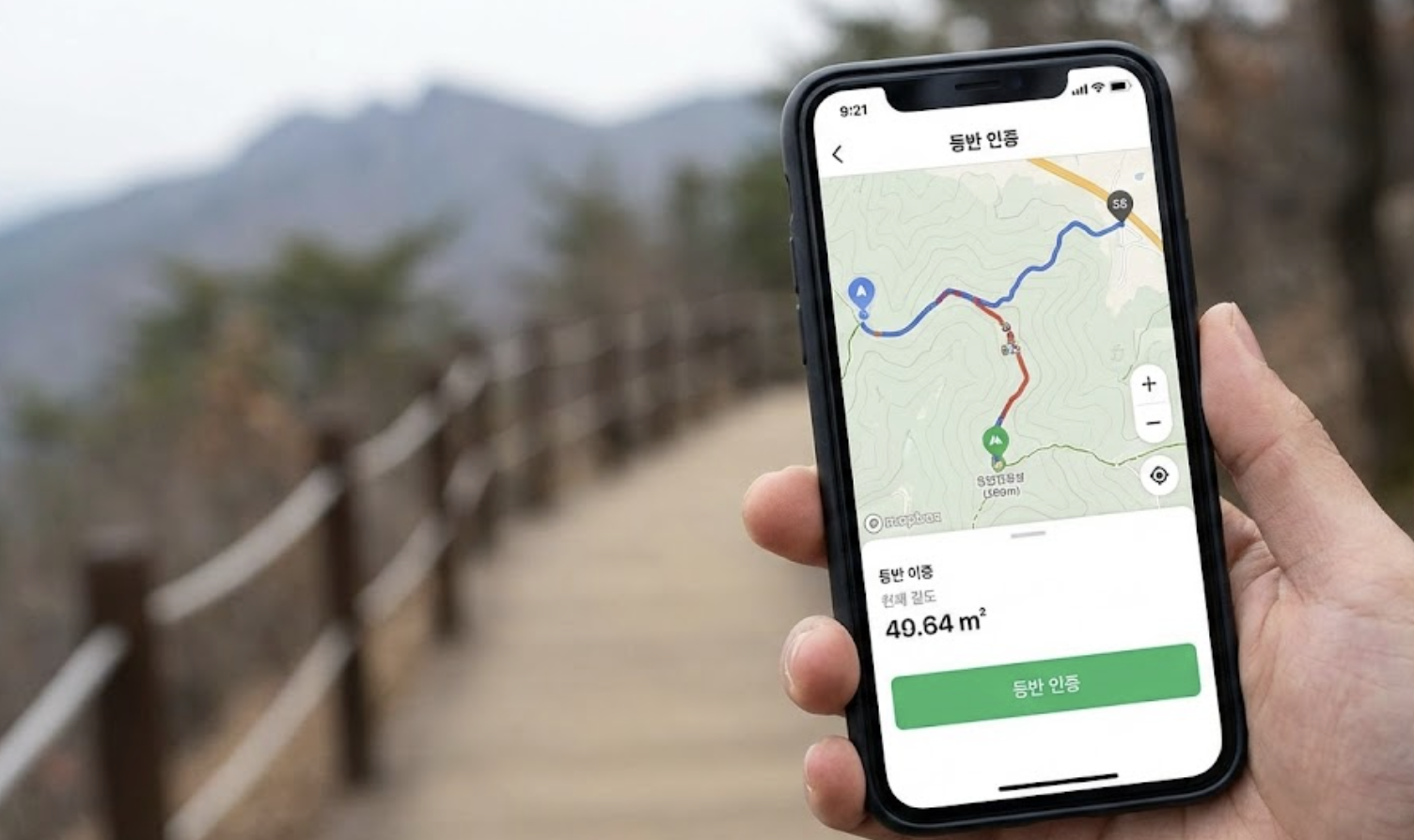 - 등산 기록 시작 등산 시작 전 앱에서 ‘등산 기록 시작’ 버튼을 눌러 GPS 트래킹을 시작합니다. 이는 등반 거리를 기록하고, 인증 시 위치 정보를 확인하는 데 사용됩니다.