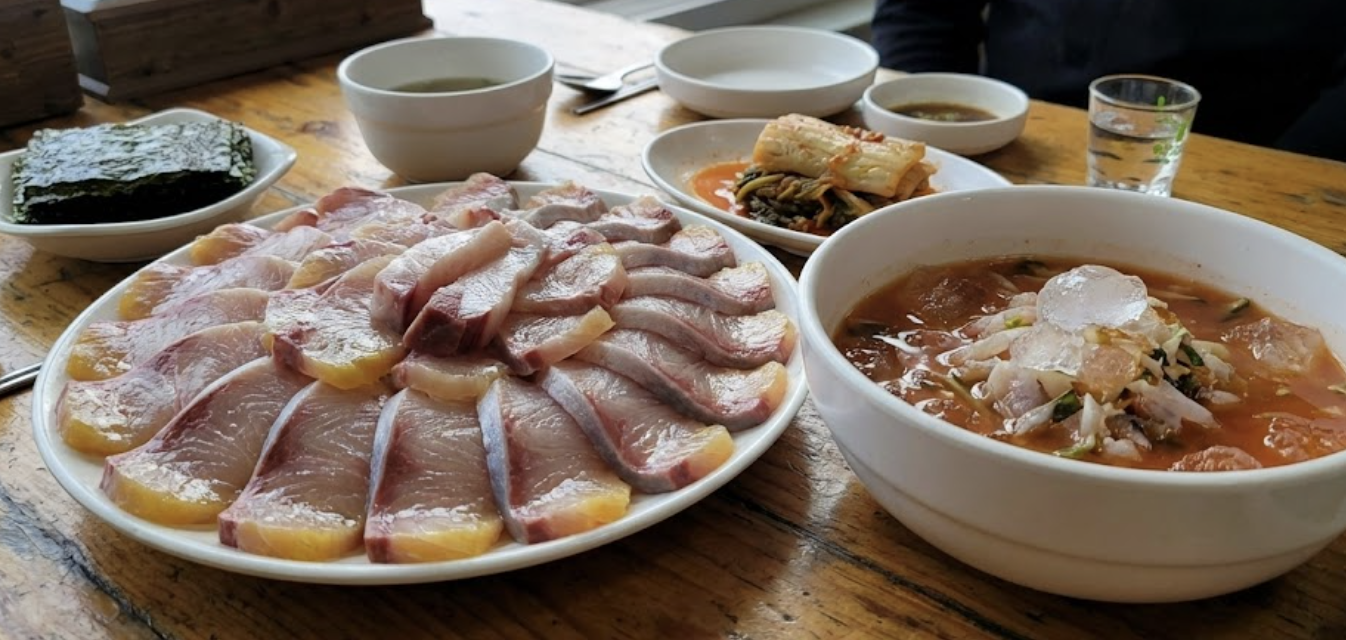 김과 묵은지 : 방어는 그냥 먹어도 맛있지만, 김에 싸서 묵은지나 백김치를 곁들이면 방어의 고소함과 김치의 새콤함이 어우러져 더욱 풍부한 맛을 느낄 수 있습니다. 나운터횟집에서도 기본 찬으로 제공되는 경우가 많습니다.