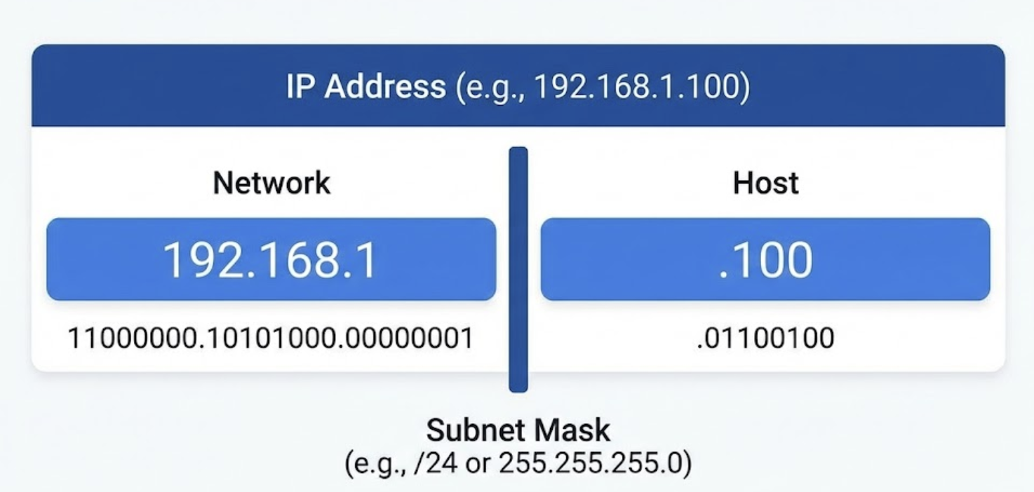 우리가 살고 있는 세상에 집 주소가 있듯이, 인터넷에 연결된 모든 기기에는 고유한 ‘IP 주소’가 있습니다. 이 IP 주소는 192.168.1.100처럼 점으로 구분된 네 개의 숫자로 이루어져 있습니다. 그런데 이 IP 주소만으로는 해당 기기가 어떤 네트워크에 속해 있는지, 그리고 같은 네트워크 안에서 어떤 기기인지 구분하기 어렵습니다.