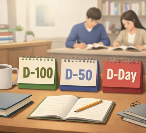 주기적인 휴식 계획: 학습 계획에 휴식 시간을 반드시 포함하세요. 디데이 카운트다운이 길어질수록 지치기 쉽습니다. 주말 중 하루는 완전히 쉬거나, 짧은 휴식 시간을 정기적으로 갖는 것이 장기적인 학습 효율에 도움이 됩니다.