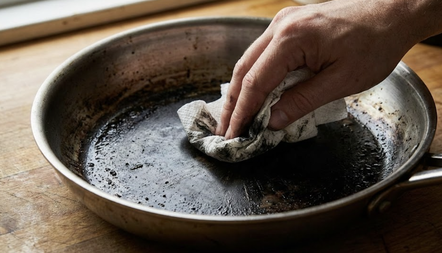 가장 확실한 방법은 키친타월에 식용유를 묻혀 제품을 다시 한번 닦아보는 것입니다. 이때 더 이상 검은 연마제가 묻어 나오지 않는다면 깨끗하게 제거되었다고 볼 수 있습니다. 육안으로도 광택이 나고 얼룩이 없는지 확인하세요.