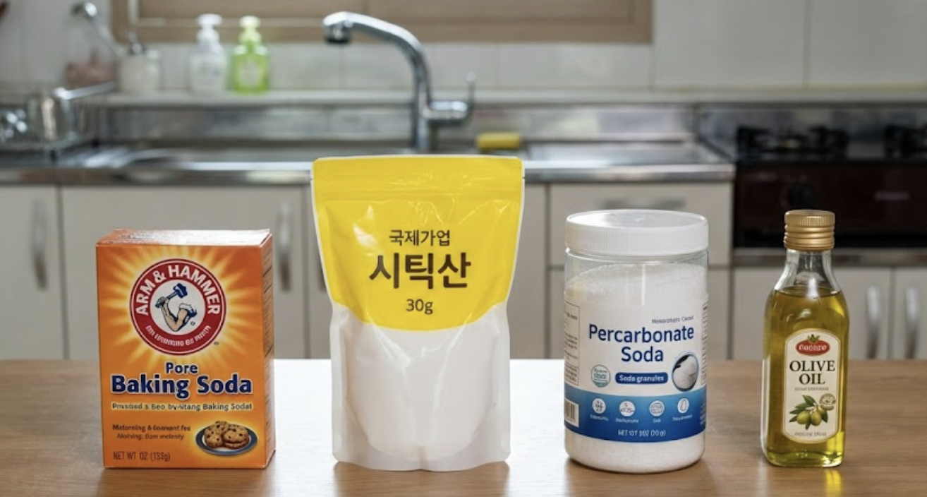 - 다이소 제품 활용: 베이킹소다, 구연산, 과탄산소다 등은 다이소에서 매우 저렴한 가격에 대용량으로 구매할 수 있습니다. 한 번 구매해두면 연마제 제거뿐만 아니라 다양한 주방 청소에도 유용하게 사용할 수 있어 가성비가 매우 뛰어납니다.