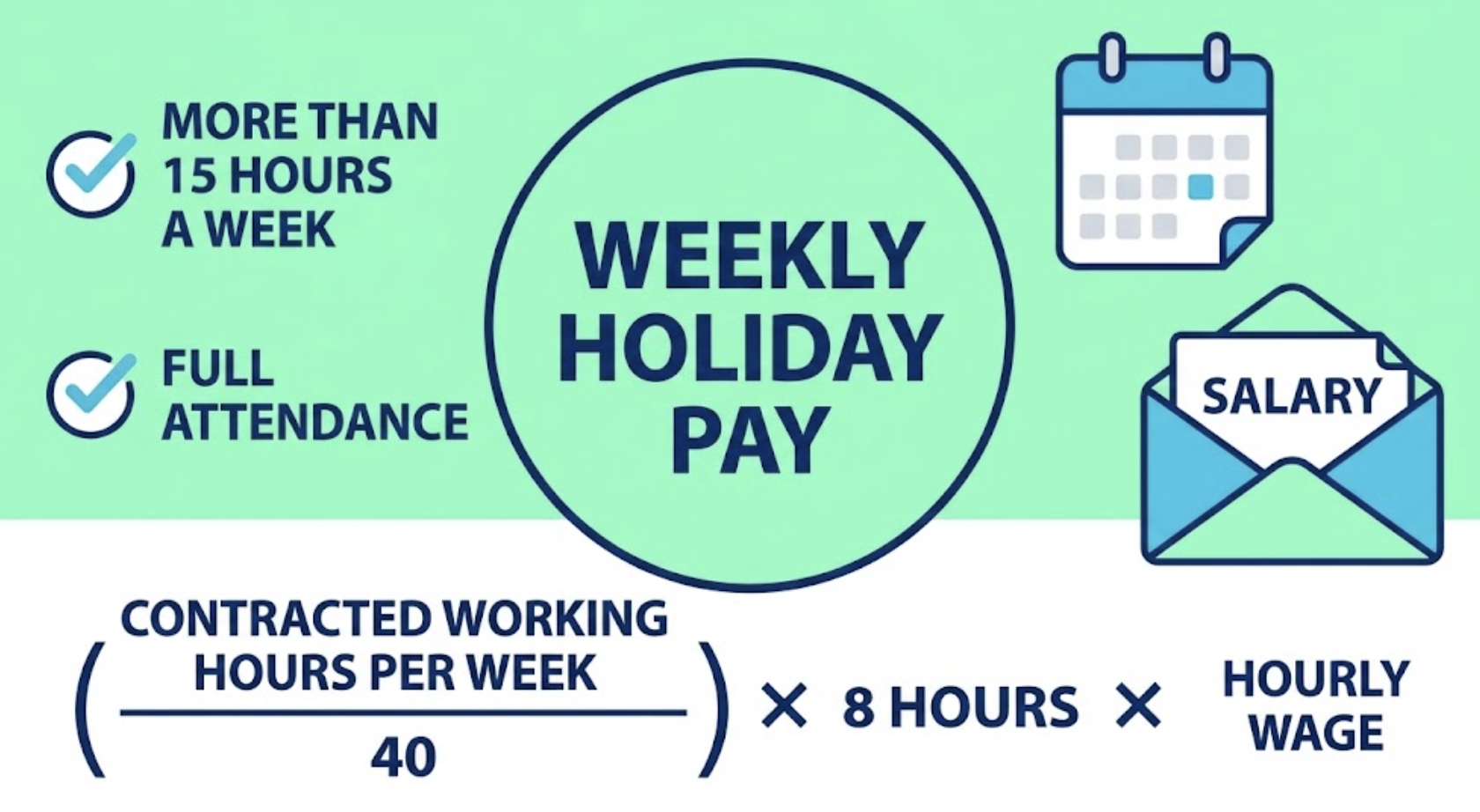 - 한 주 동안 개근: 결근 없이 정해진 근무일에 모두 출근해야 합니다. 지각이나 조퇴는 개근에 영향을 미치지 않지만, 무단결근은 주휴수당 미지급 사유가 됩니다.
