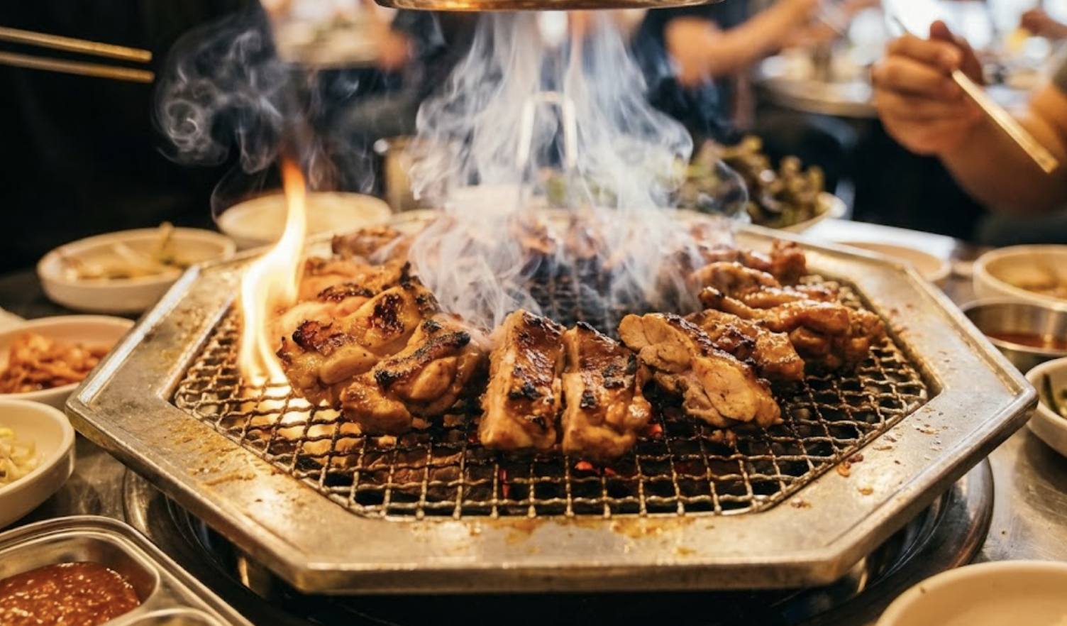 사실: 팔각도의 닭갈비는 대부분 매장에서 숯불에 ‘초벌’하여 제공됩니다. 초벌 과정을 통해 닭고기 겉면의 육즙을 가두고 숯불 향을 입히는 것이죠. 손님 상에서는 팔각 불판에 한 번 더 구워 따뜻하게 즐길 수 있습니다. 완전히 생 닭을 구워 먹는 방식과는 다릅니다. - 모든 지점의 맛이 완벽하게 동일하다?
