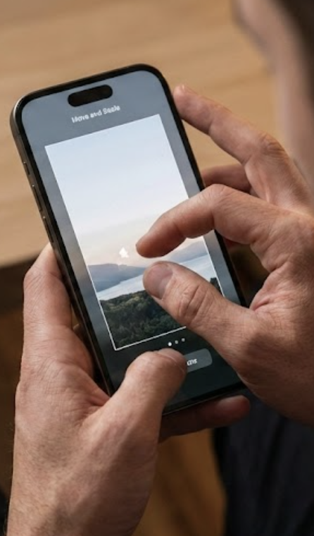 - 사진을 선택한 후, 두 손가락으로 화면을 확대/축소하여 이미지의 크기를 조절할 수 있습니다.