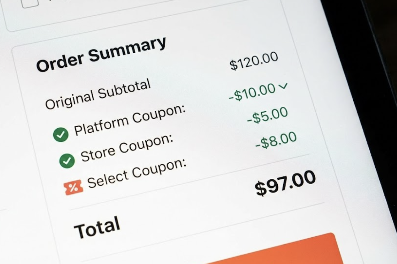 알리익스프레스는 일반적으로 플랫폼 코드 + 셀렉트 쿠폰 + 스토어 쿠폰의 조합으로 중복 할인이 가능한 경우가 많습니다. 예를 들어, 100달러짜리 상품을 구매할 때: