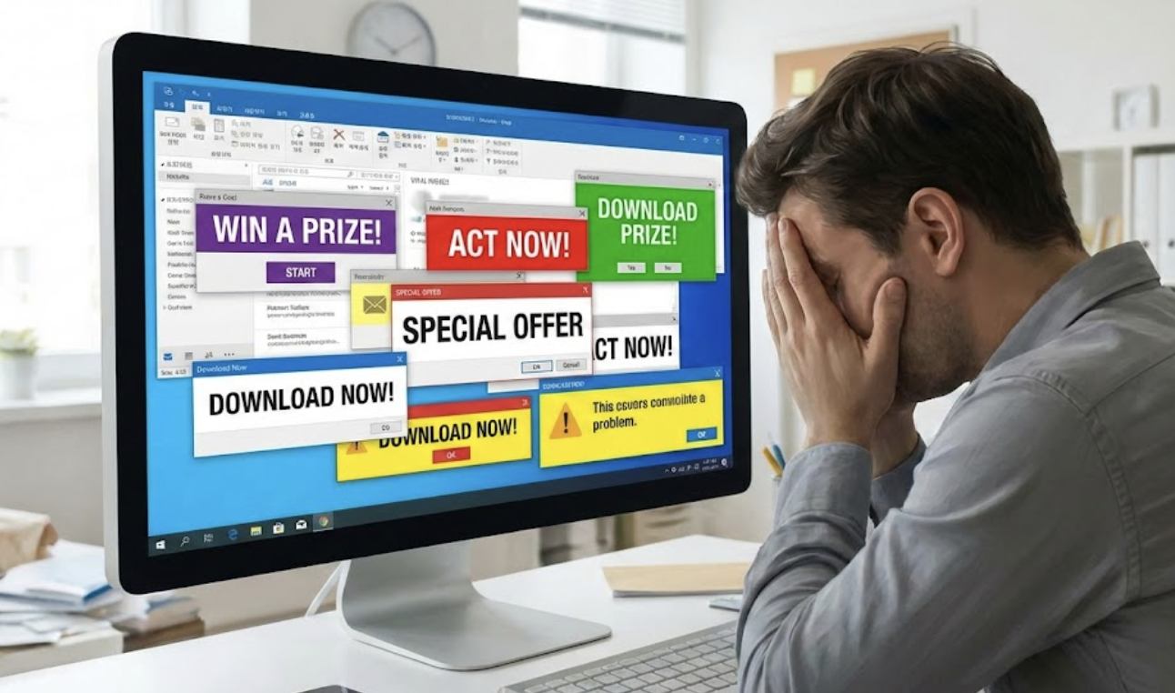 - 팝업 광고: 프로그램을 실행하거나 종료할 때, 또는 특정 기능을 사용할 때 별도의 창으로 갑자기 나타나는 광고입니다. 사용자에게 가장 큰 불편함을 주는 유형 중 하나입니다.
