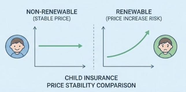 사실 초기 보험료는 갱신형보다 비쌀 수 있습니다. 하지만 갱신형은 일정 주기마다 보험료가 인상되어 장기적으로는 비갱신형이 총 납입 보험료 면에서 더 경제적일 수 있습니다. 특히 아이의 보험은 장기간 유지해야 하므로 비갱신형이 훨씬 유리한 경우가 많습니다.