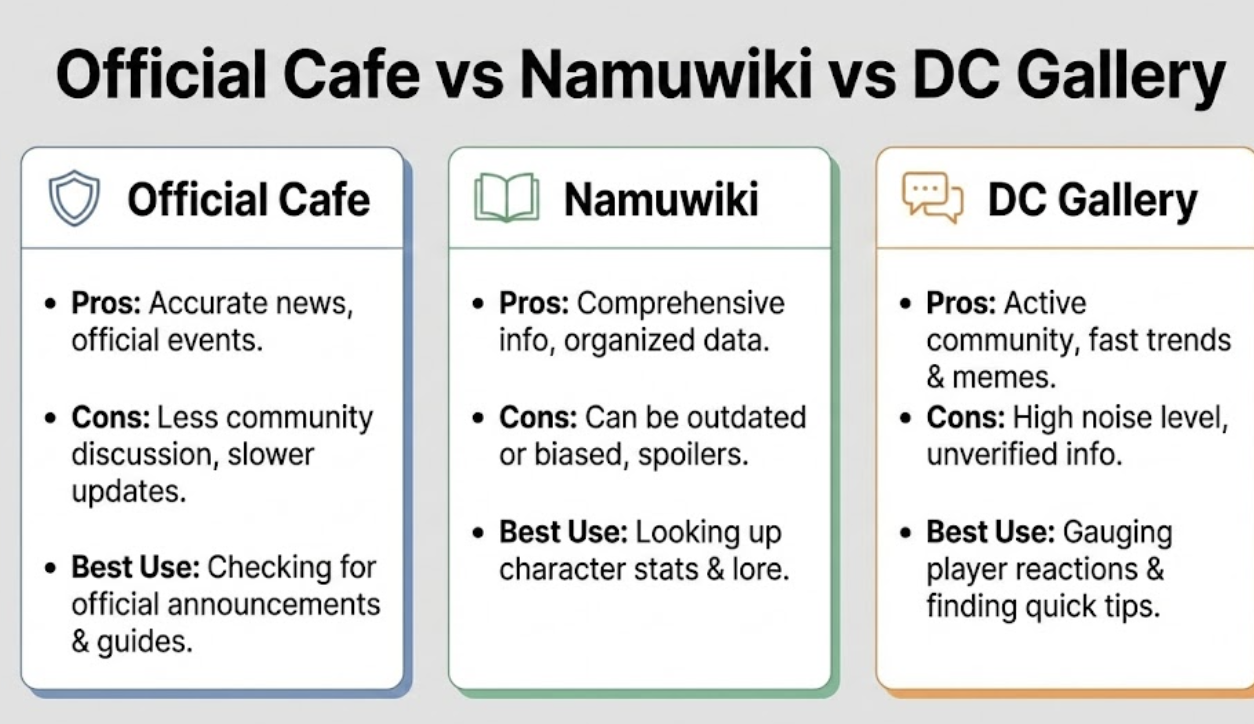공식 오픈 카페의 정확한 정보와 나무위키의 상세한 공략, 그리고 디시 갤러리의 생생한 유저 반응을 모두 참고하되, 어느 한쪽에만 치우치지 않는 균형 잡힌 시각을 유지하는 것이 중요합니다. 각 정보원의 장단점을 이해하고, 필요에 따라 적절히 활용하세요.