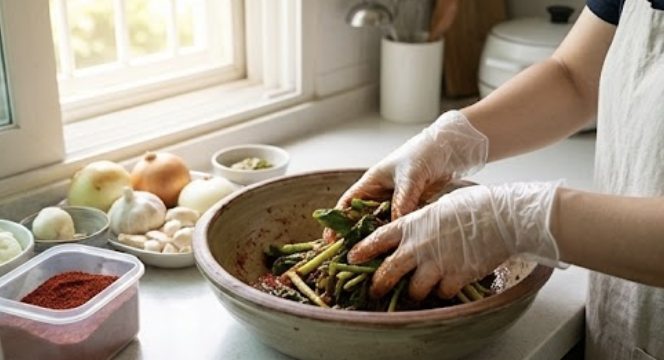 - 맛보기 및 간 조절: 버무린 열무김치의 맛을 보고, 기호에 따라 소금이나 액젓, 설탕 등으로 간을 맞춰줍니다.