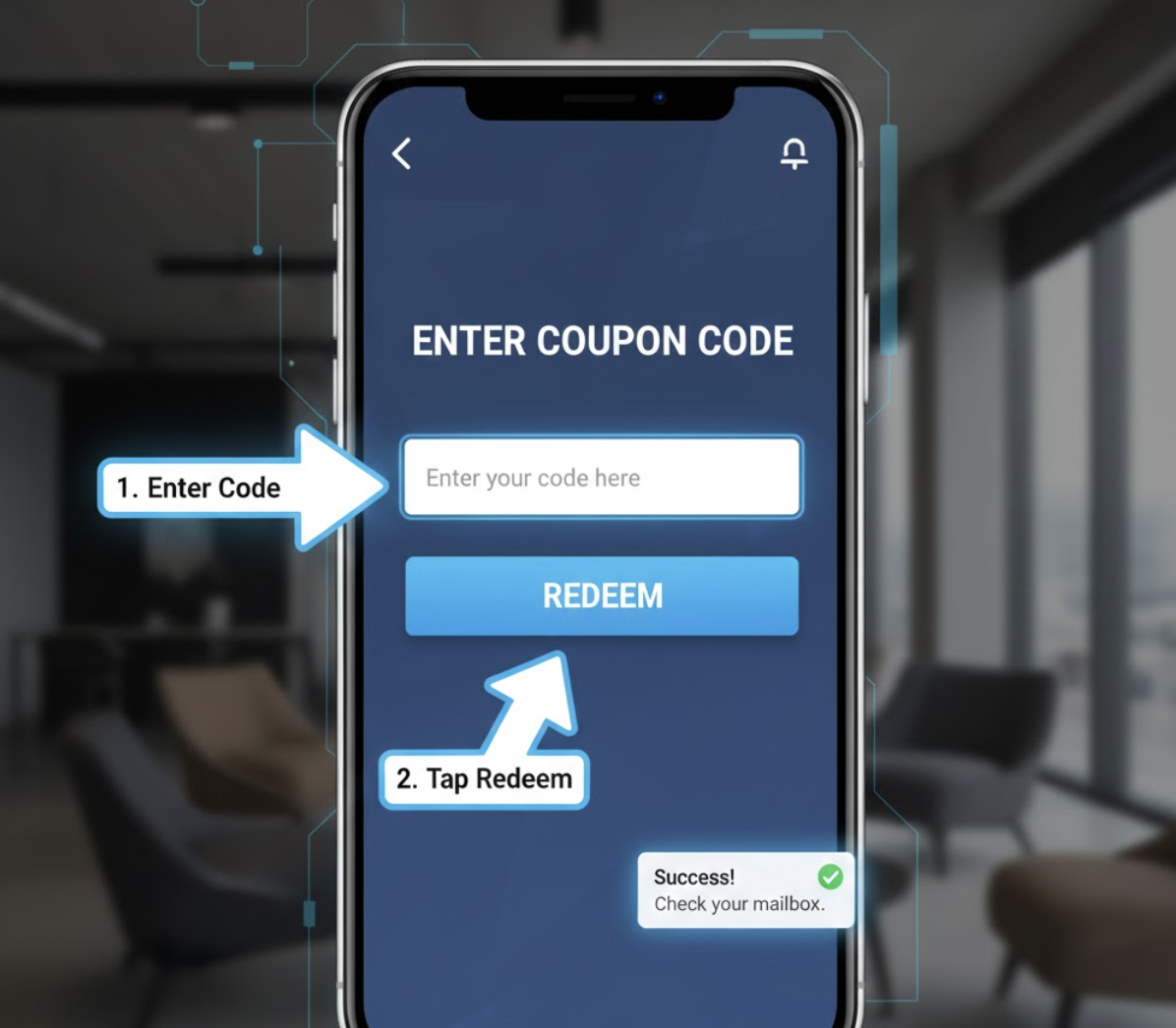 - 쿠폰 코드를 정확하게 입력합니다. (대소문자를 구분하는 경우가 많으니 주의하세요!)