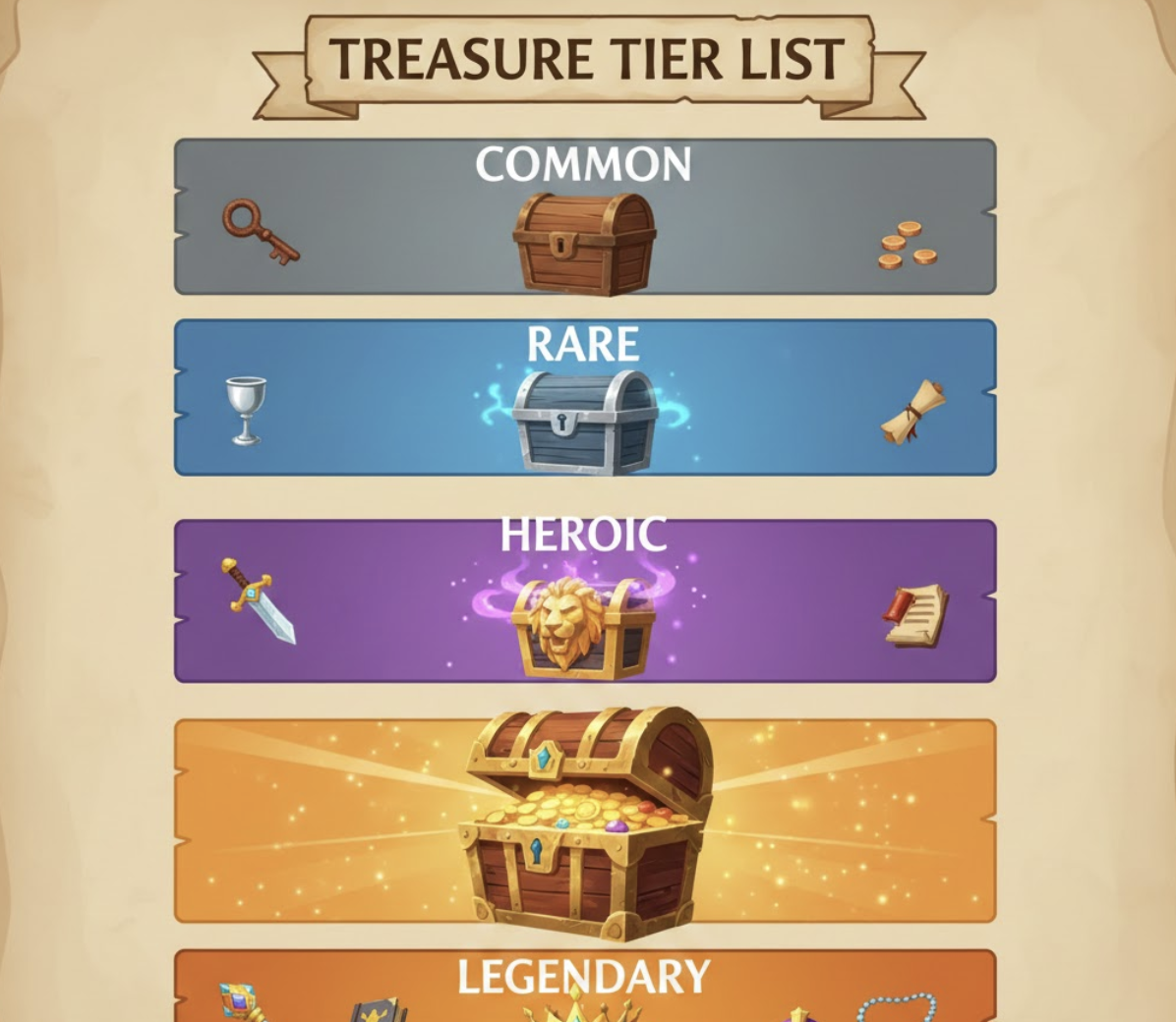 보물 티어는 다음과 같은 기준으로 나눌 수 있습니다.