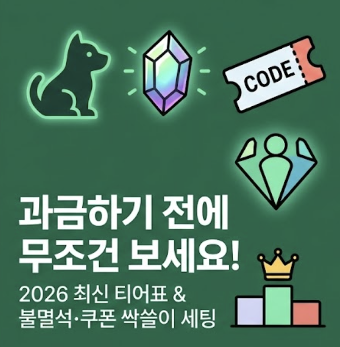 A4: 최신 쿠폰 코드는 주로 운빨존많겜 공식 카페, 공식 SNS 채널(트위터, 페이스북 등), 그리고 게임 관련 유튜버나 인플루언서의 영상을 통해 공개됩니다. 2026년과 같이 미래의 쿠폰 코드를 미리 알 수는 없지만, 게임 서비스가 지속되는 한 꾸준히 새로운 쿠폰이 나올 가능성이 높으므로, 앞서 언급한 채널들을 주기적으로 확인하는 것이 중요합니다. - Q5: 티어표에 없는 캐릭터나 펫은 키우면 안 되나요?