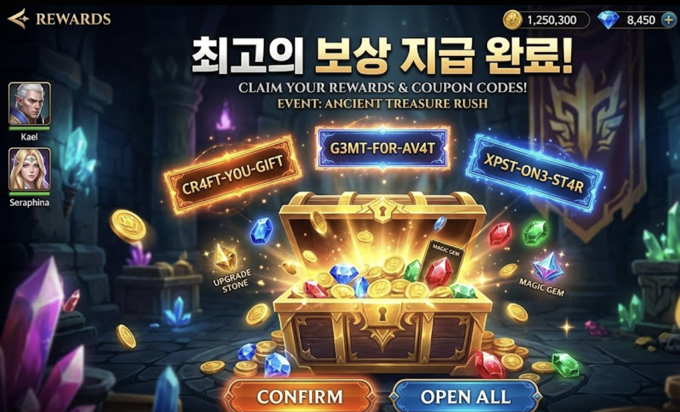 대부분의 모바일 게임과 유사하게, 게임 내 설정 메뉴 또는 이벤트 메뉴에서 ‘쿠폰 입력’ 버튼을 찾아 코드를 입력하면 보상이 우편함으로 지급됩니다. 정확한 입력 방법을 모른다면 공식 카페 공지를 참고하는 것이 가장 확실합니다. - 주의사항