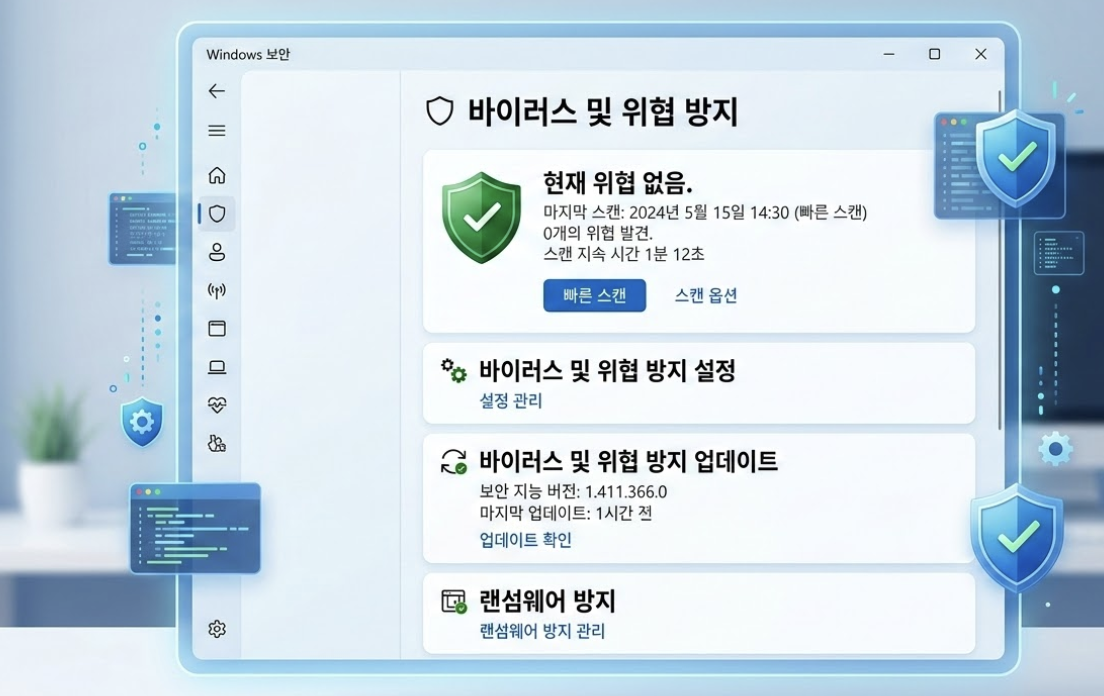 - 하나의 메인 백신만 사용: 윈도우 디펜더를 기본으로 사용하거나, V3 또는 다른 유료/무료 백신 중 하나를 선택하여 메인으로 사용합니다.