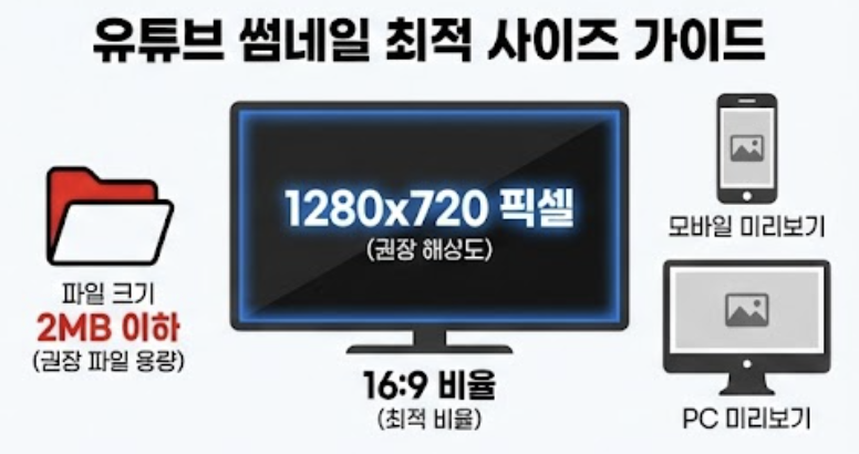유튜브 썸네일은 다양한 기기에서 시청되기 때문에 최적의 크기와 해상도를 지키는 것이 중요합니다. 너무 작거나 해상도가 낮으면 이미지가 깨져 보이고, 너무 크면 로딩 속도에 영향을 줄 수 있습니다.