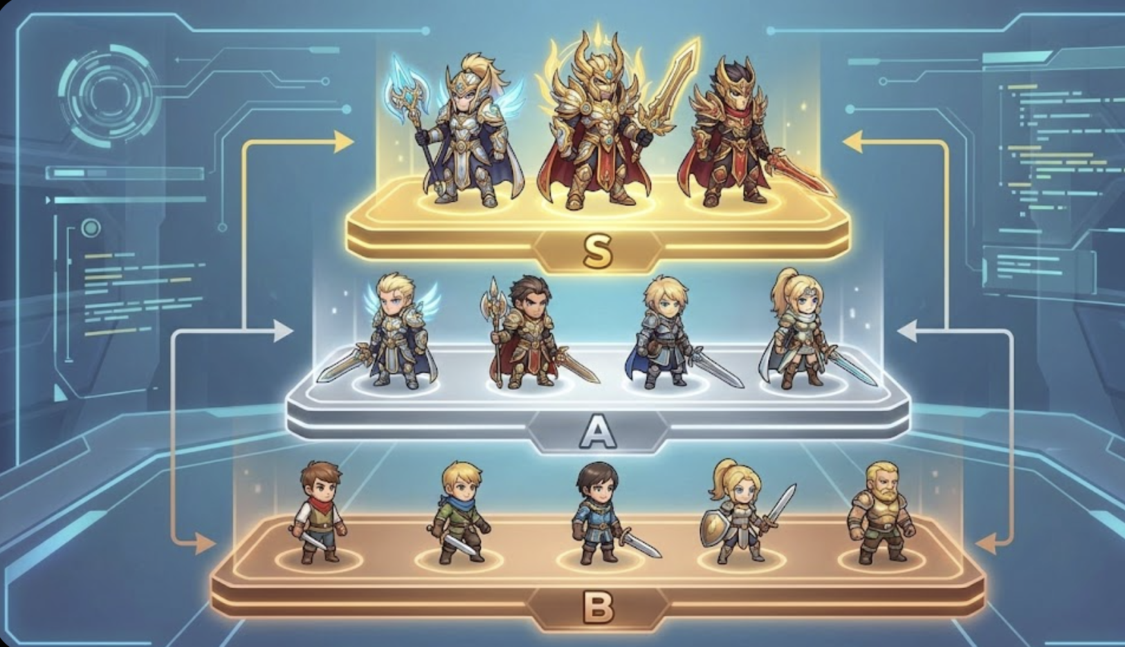 • 일반적으로 S, A, B, C 등의 등급으로 나뉘며, S등급이 가장 강력하고 활용도가 높은 영웅을 의미합니다. 때로는 특정 콘텐츠(예: 아레나, 보스전, 스토리)에 특화된 티어표가 제공되기도 합니다.
