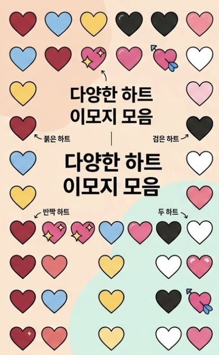 - 🖤 검은 하트: 슬픔, 어둠, 시크함, 혹은 다크한 유머를 표현할 때 사용됩니다.