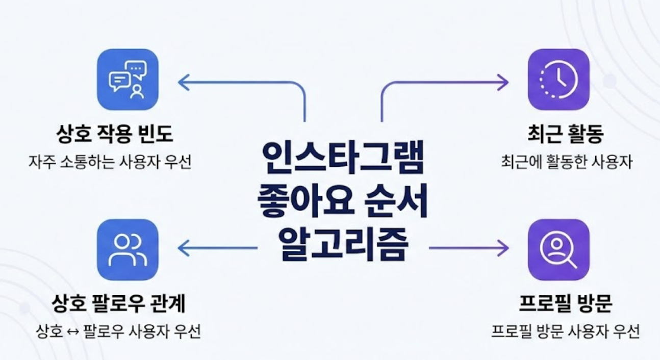 인스타그램은 공식적으로 좋아요 순서 알고리즘을 상세히 공개하지 않지만, 사용자들의 경험과 전문가들의 분석에 따르면 다음 요인들이 큰 영향을 미치는 것으로 알려져 있습니다.