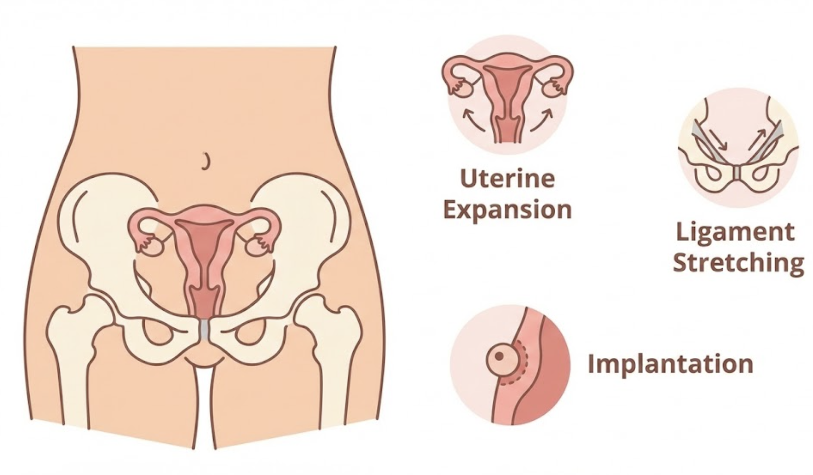 임신이 되면 자궁은 아기가 자랄 공간을 만들기 위해 빠르게 크기가 커지기 시작합니다. 이 과정에서 자궁을 지지하는 주변 인대와 근육이 늘어나고 이완되면서 아랫배나 골반 부위에 콕콕 쑤시거나 묵직한 느낌, 또는 당기는 듯한 통증을 유발할 수 있습니다. 특히 몸을 갑자기 움직이거나 기침을 할 때 통증이 더 심해질 수 있습니다. 이는 지극히 정상적인 현상이며, 자궁이 자리를 잡아가면서 점차 완화되는 경향이 있습니다.