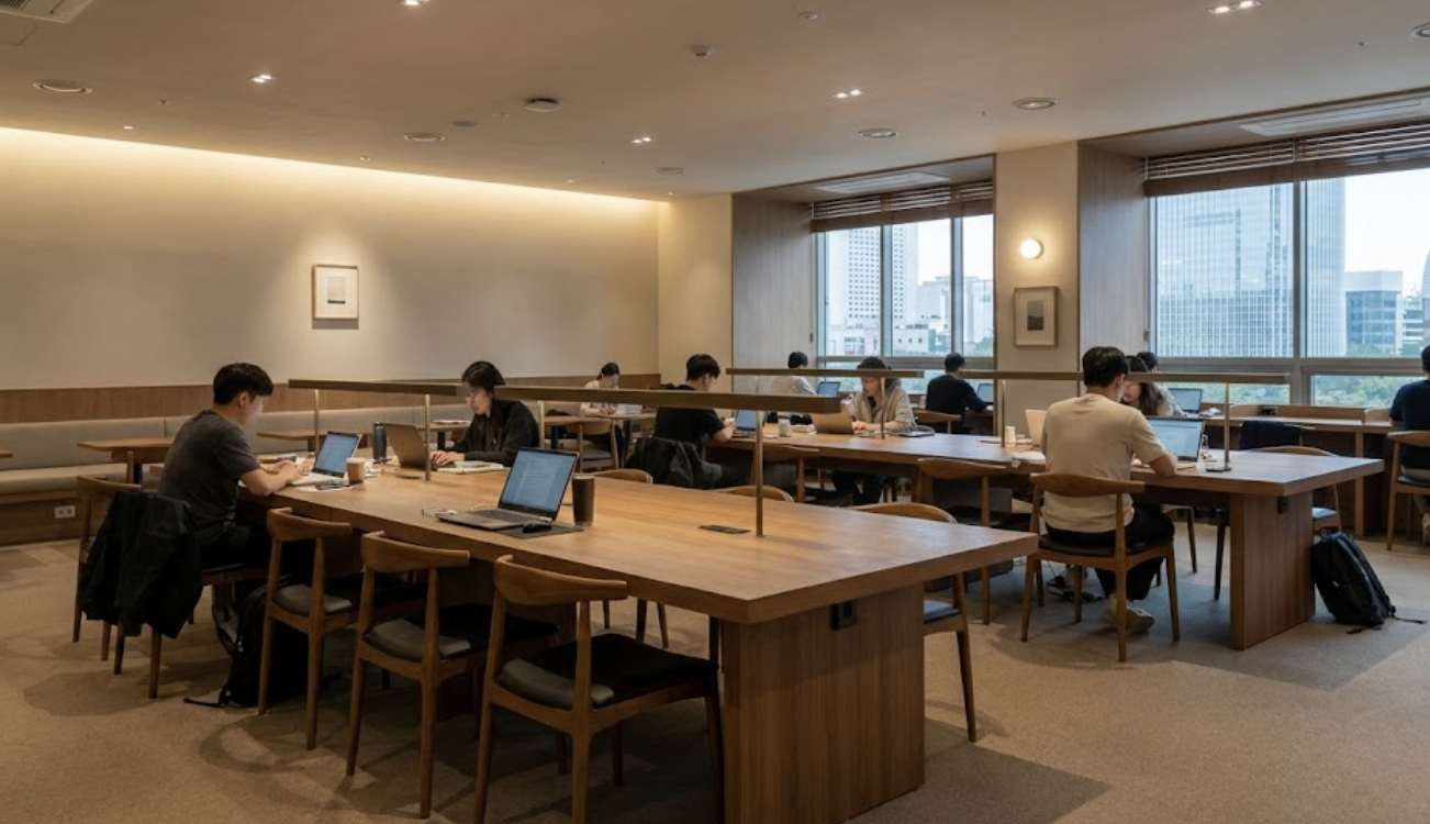엄밀히 말해 일반 카페는 아니지만, 카공 목적에 가장 최적화된 공간입니다. 잠실에도 이러한 전문 공간들이 여러 곳 있습니다.