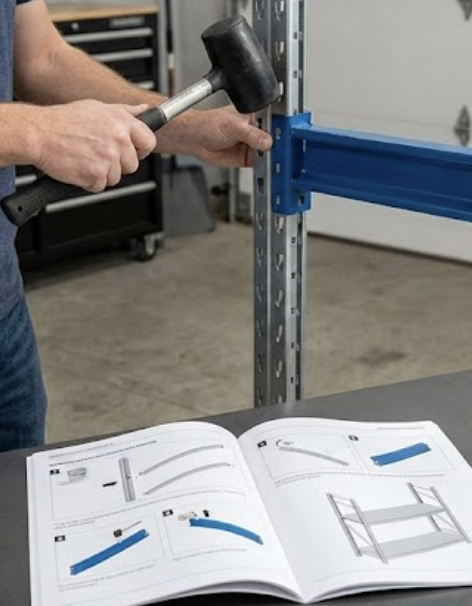 - 특징 볼트나 너트 없이 프레임의 홈에 선반을 끼워 넣거나 망치로 두드려 고정하는 방식입니다.
