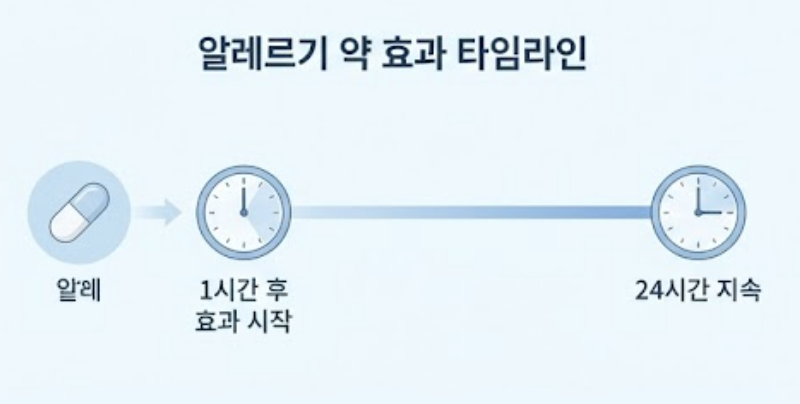 지르텍은 복용 후 비교적 빠르게 효과가 나타나는 편입니다. 보통 섭취 후 약 1시간 이내에 효과가 나타나기 시작하며, 최대 24시간 동안 알레르기 증상 완화 효과가 지속됩니다. 따라서 하루에 한 번 복용하는 것으로 충분한 효과를 볼 수 있습니다. 알레르기 증상이 심한 시기에는 매일 같은 시간에 꾸준히 복용하는 것이 증상 관리에 도움이 됩니다.