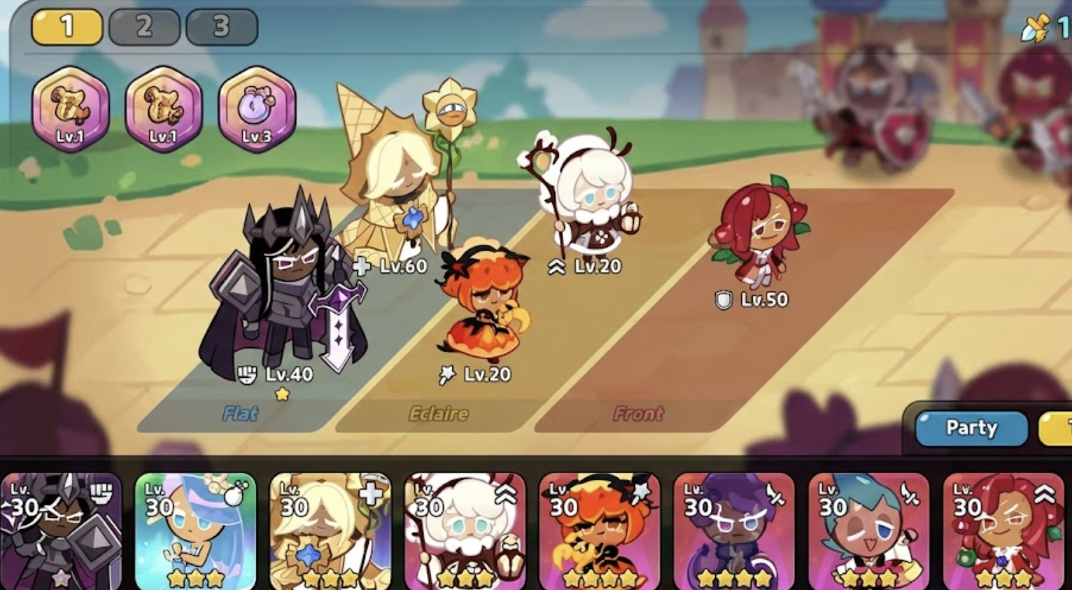 - 밸런스 있는 팀 구성 보통 방어형/돌격형, 딜러(마법/사격/침투), 서포터/회복형 쿠키를 적절히 섞어 밸런스 있는 팀을 구성하는 것이 일반적입니다.