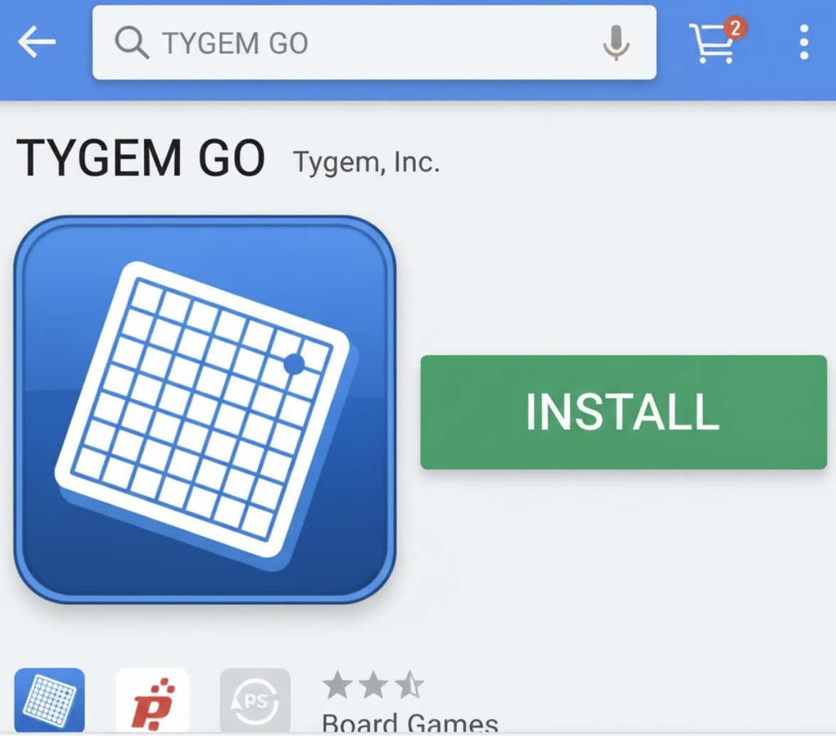 - 검색: 검색창에 ‘타이젬 바둑 앱’ 또는 ‘TYGEM’을 입력합니다.