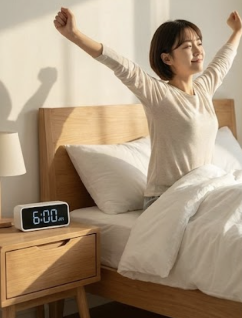 - 여러 개의 알람 설정 처음에는 5~10분 간격으로 여러 개의 알람을 설정하여 몸이 깨어날 준비를 하도록 돕습니다.