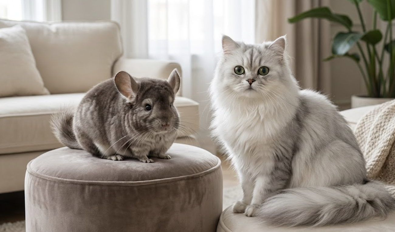 많은 분들이 ‘친칠라 고양이’ 또는 ‘페르시안 친칠라’라는 말을 듣고 친칠라(설치류)와 혼동하는 경우가 있습니다. 하지만 페르시안 친칠라는 고양이의 한 품종으로, 친칠라(설치류)와는 전혀 다른 동물입니다. 페르시안 친칠라 고양이는 페르시안 고양이 중에서도 털 끝에만 색이 살짝 들어간 은색 또는 금색 모색을 가진 품종을 지칭합니다. 이 둘은 이름만 비슷할 뿐, 종 자체가 완전히 다르므로 혼동하지 않도록 주의해야 합니다.
