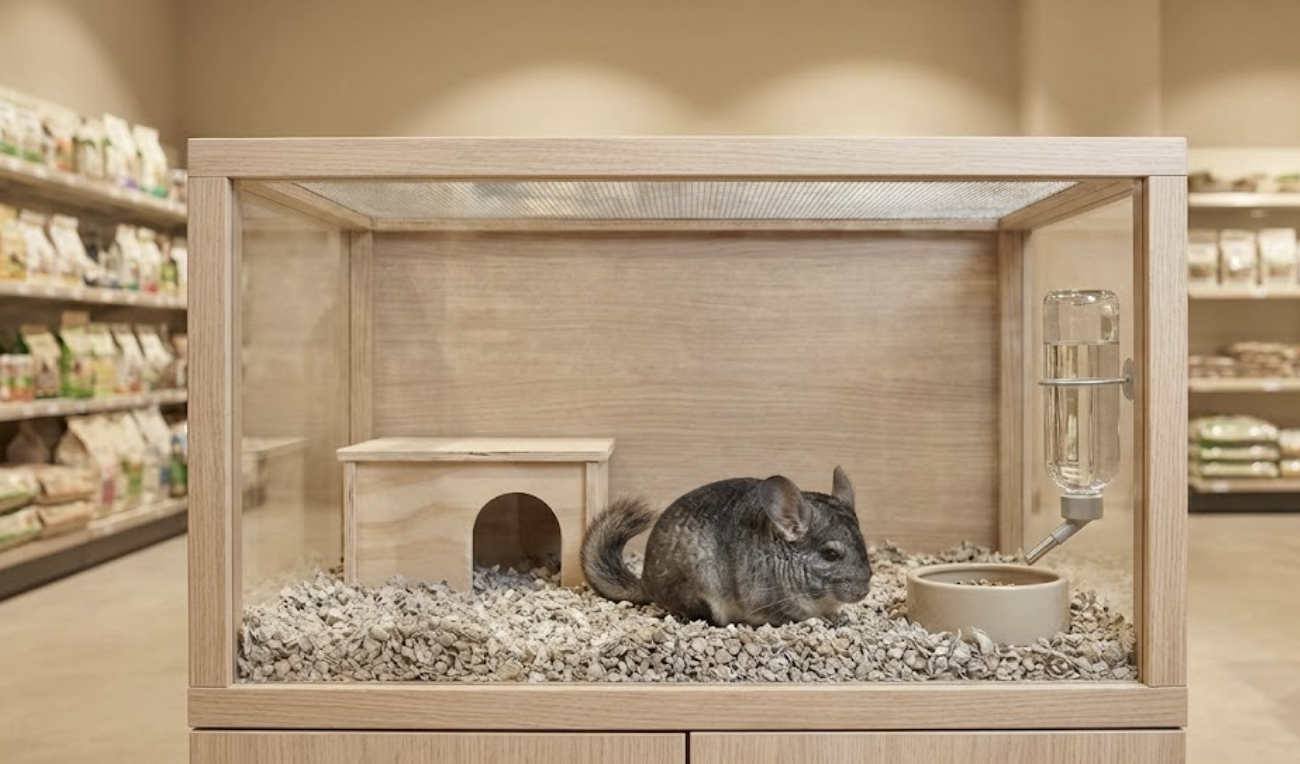 - 재질: 철망 케이지가 가장 적합합니다. 플라스틱 케이지는 친칠라가 씹어서 탈출하거나 삼킬 위험이 있고, 통풍이 어려워 고온다습해질 수 있습니다.