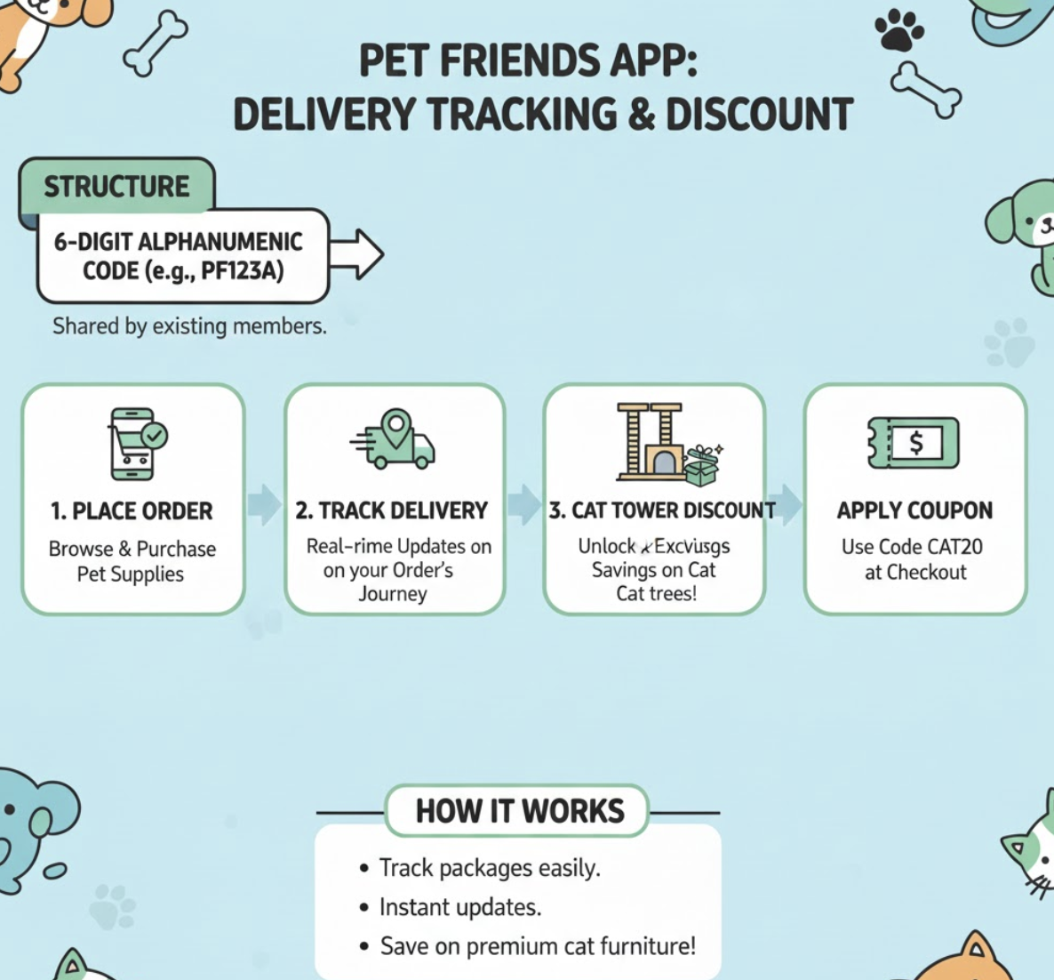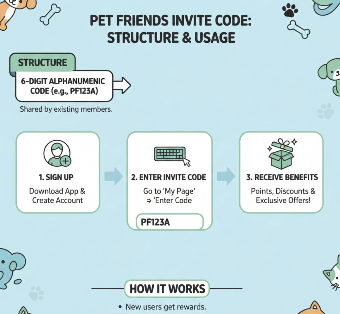 - 가족이나 친구에게 펫프렌즈를 추천하고 초대코드를 공유하여 함께 혜택을 누리세요.