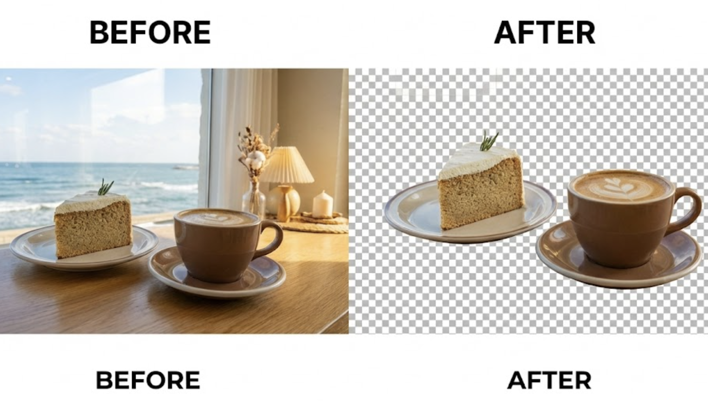 누끼 따기는 사진에서 특정 사물이나 인물만 분리하여 배경을 제거하는 작업입니다. 카페 사진에서 특정 음료나 디저트를 강조하고 싶을 때 유용하게 활용할 수 있습니다.