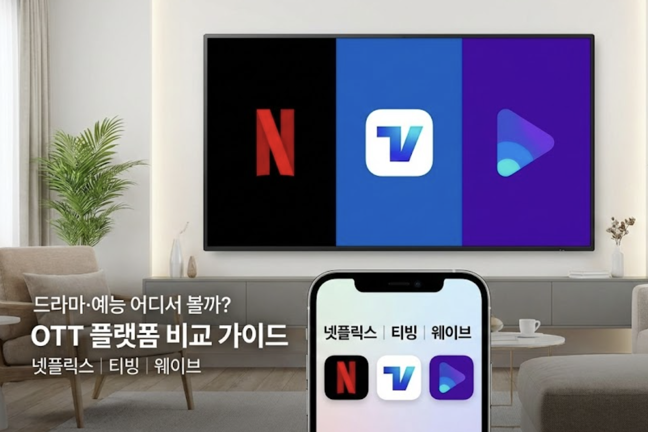 OTT(Over The Top) 서비스는 인터넷을 통해 영상 콘텐츠를 제공하는 서비스로, 셋톱박스 없이 스마트폰, 태블릿, PC, 스마트 TV 등 다양한 기기에서 시청할 수 있습니다. 넷플릭스, 티빙, 웨이브, 쿠팡플레이, 디즈니플러스 등이 대표적인 OTT 서비스입니다. 이들 서비스는 본방 사수 부담 없이 원하는 시간에 원하는 콘텐츠를 볼 수 있다는 장점 때문에 TV와 함께 현대인의 필수 미디어 플랫폼으로 자리 잡았습니다.